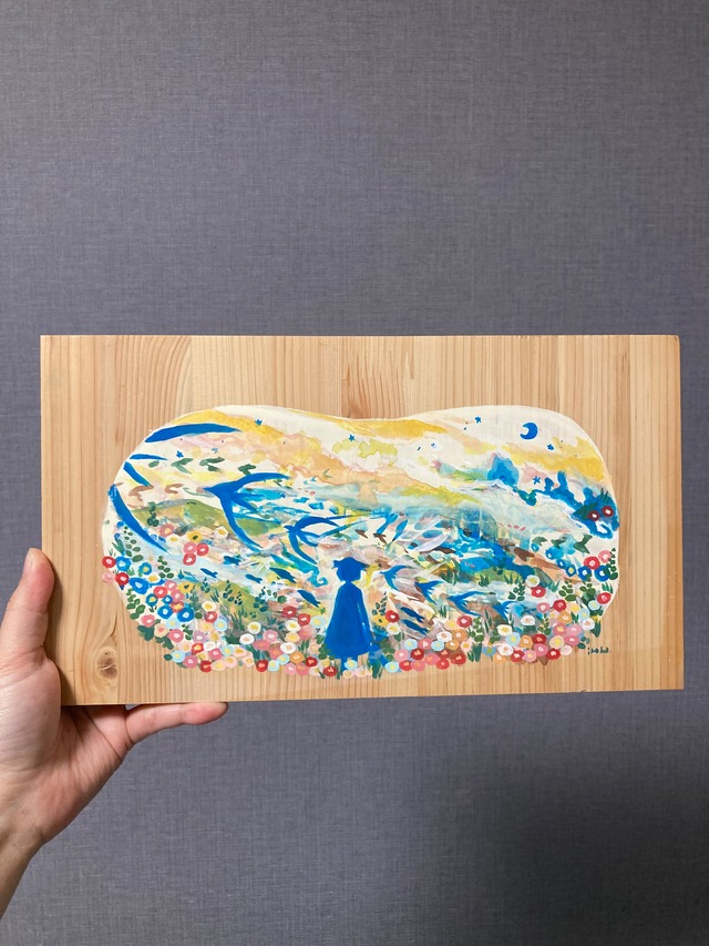 『めまぐるしく胎動する世界を君に』 196mm×300mm アクリルガッシュ、板 伏せていた瞼をようく開いて。欲しいものを口にして。 わたしはあなたの敵ではない。この世界をただ見てほしい。 見せたかったもの、ここにもそこにもいくらだってある。 --------------- 下記について予めご了承くださいませ。 ・アナログ作品となっておりますので、実物の色味や質感などは写真と異なる場合があります。 ・本価格はネット販売価格となっており、対面販売価格とは異なる場合があります。 ・通常、発送までお時間頂戴しております。 ・注文確定後のキャンセル/返品は受け付けておりません。 ・ご購入いただいた作品についても、著作権は作者であるiroha.に帰属します。 ・ご購入いただいた作品について、再販売、コピー、グッズ制作などは一切禁止しております。 ご不明な点がありましたら、購入前にお問合せくださいませ。 どうぞよろしくお願い申し上げます。